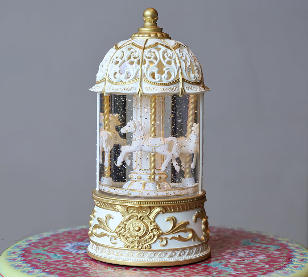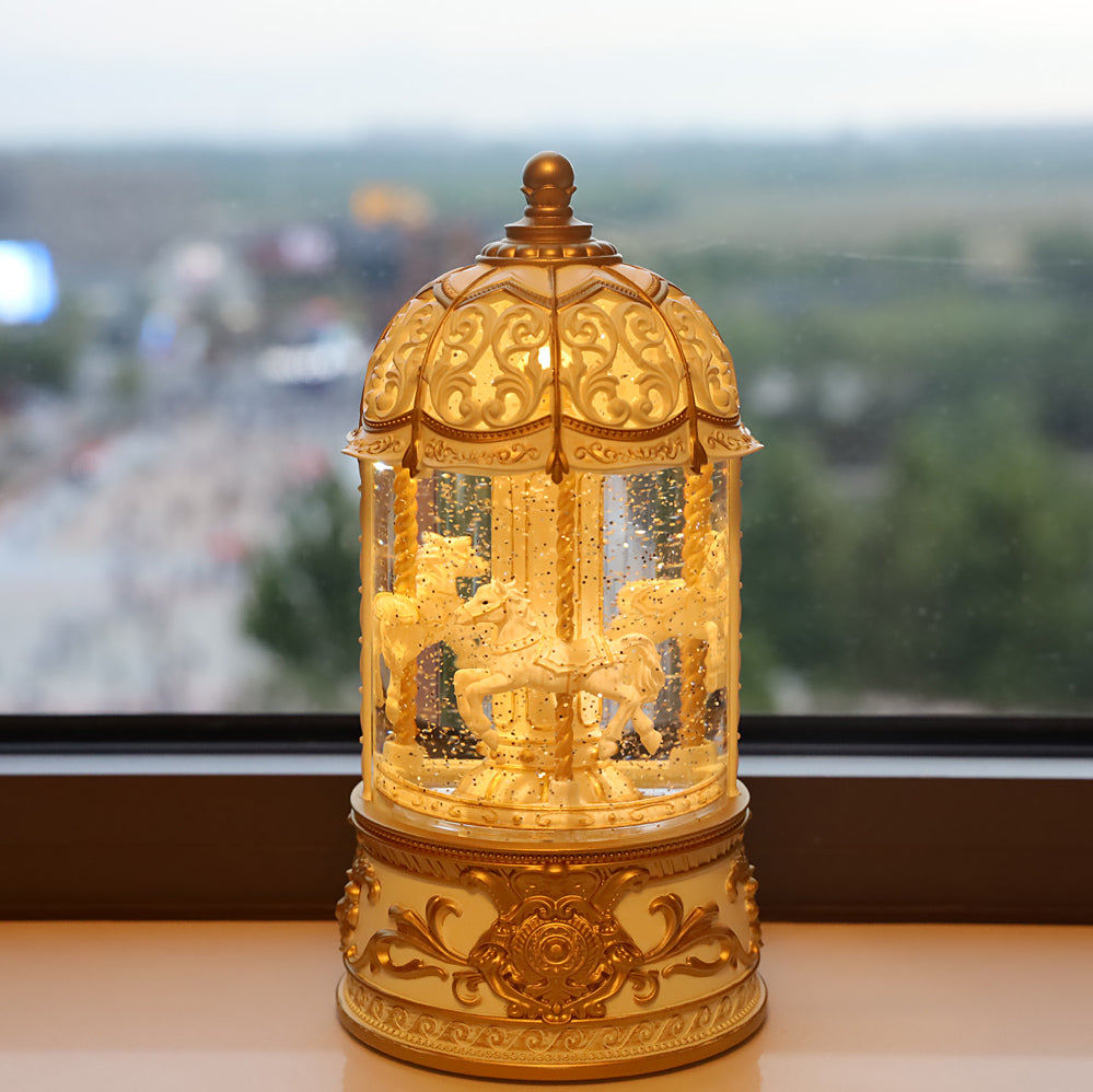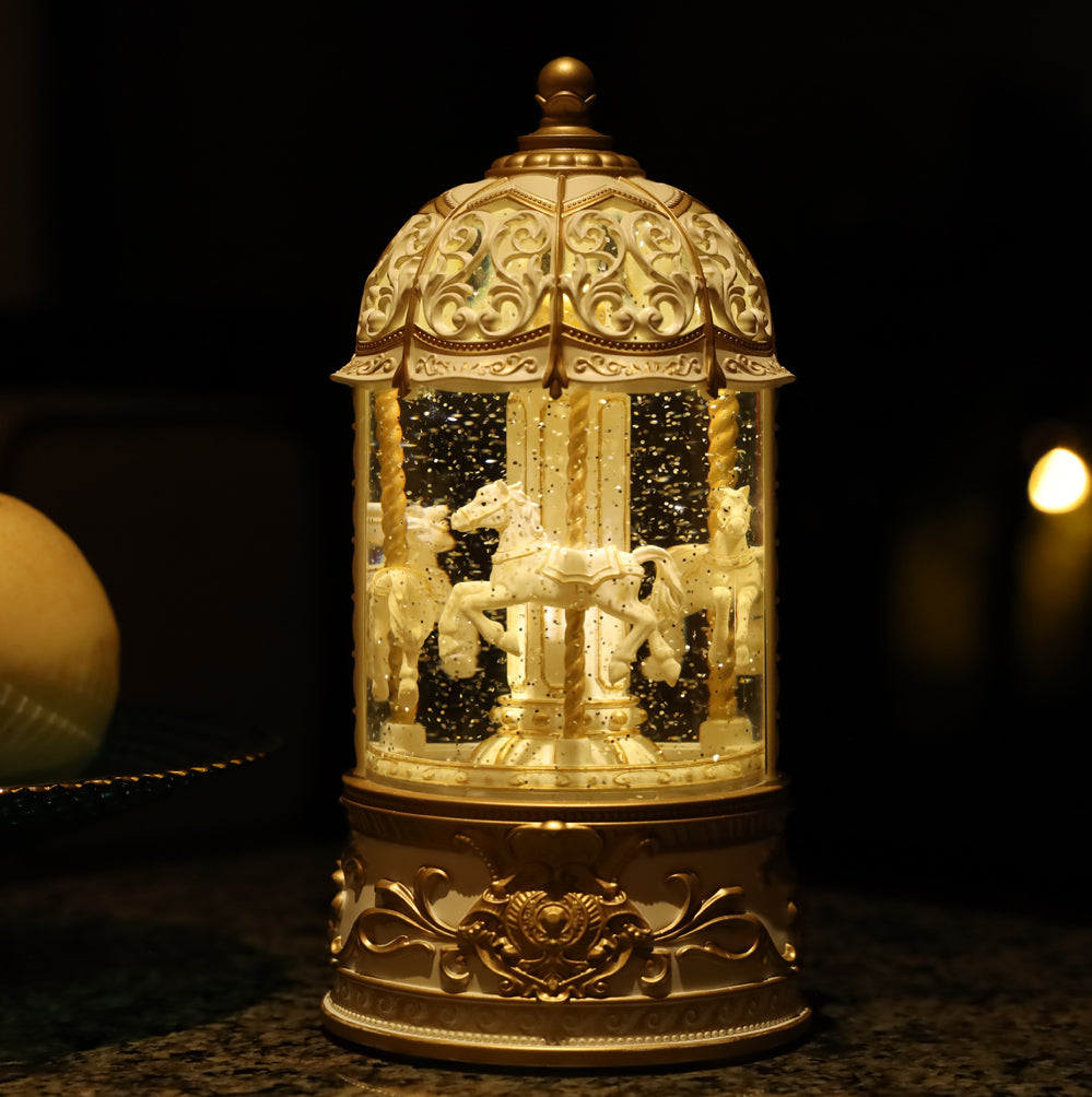 ♫This exquisite carousel water lantern music box brings a touch of peaceful beauty to your home décor. It plays four delightful melodies, or you can simply let it rotate silently for a moment of calm. When the lights are turned on, it glows beautifully, creating a warm, festive carnival atmosphere that fills your room with joy and charm.